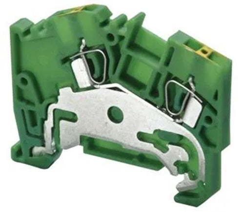 Altech, Angular Spring Clamp Ground Terminal Block, 2 Clamps, 600 V, 22-12 AWG, 54 L x 5 W mm, Yellow/Green, Pack of 100 AGT2.5