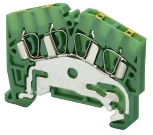 Altech, Angular Spring Clamp Ground Terminal Block, 4 Clamps, 600 V, 22-12 AWG, 54 L x 5 W mm, Yellow/Green, Pack of 100 AGT2.5/4