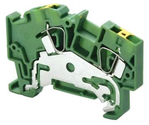 Altech, Angular Spring Clamp Ground Terminal Block, 2 Clamps, 600 V, 22-10 AWG, 61.5 L x 6 W mm, Yellow/Green, Pack of 100 AGT4