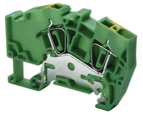 Altech, Angular Spring Clamp Ground Terminal Block, 2 Clamps, 600 V, 22-8 AWG, 74 L x 8 W mm, Yellow/Green, Pack of 50 AGT6
