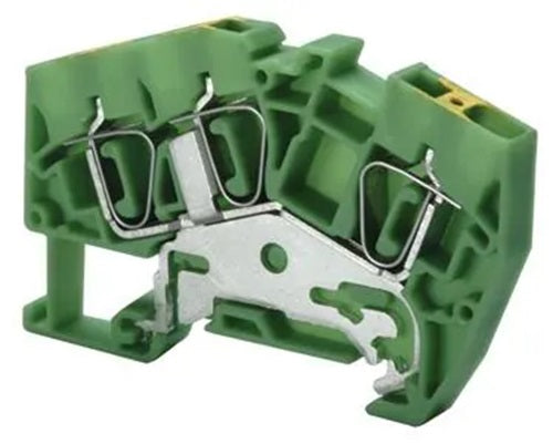 Altech, Angular Spring Clamp Ground Terminal Block, 3 Clamps, 600 V, 22-12 AWG, 74 L x 8 W mm, Yellow/Green, Pack of 100 AGT6/3