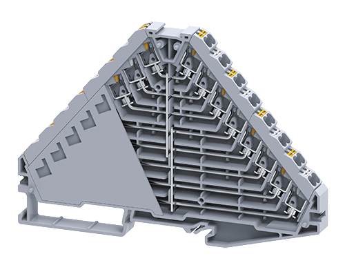 8 Level Marshelling Internally Shorted Terminal Block. The Space Saving Method for Potential and Signal Distribution. The Push in Technology for Easy Wiring Connection I.E. the Stripped Wire is Simply Inserted into the Terminal Point.