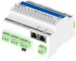 Features and benefits BACnet IP, Modbus TCP/IP, Modbus TCP/IP to Modbus RTU/ASCII Gateway, Free Software iSMA Configurator, Built-in Web Server, Dedicated Niagara Framework Modules | NO Relay Output, Resistive Load Maximum: 3 A at 230 VAC/30 VDC, Inductive Load Max. 75 VA at 230 VAC/30 W at 30 VDC | Power Supply: 24 VDC/24 VAC | 2 Ethernet Interface with Built-in Switch, RS485 Interface, Mini USB Type B Interface, Status LED Indicators, DIN Rail Mounted, 12 On Board Outputs, Hand-Off-Auto Switches
