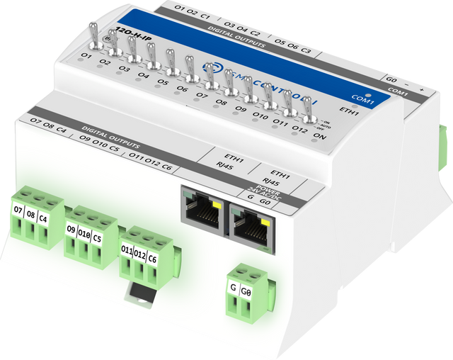 Multiprotocol I/O Module with a MAX number of Digital Outputs - a powerful addition to any building automation system - Digitalize buildings with reduced engineering time using the powerful 12 digital outputs module, which works as a remote I/O over IP with open protocols, BACnet IP and Modbus TCP/IP. Open protocols standard offers the versatility of installing the modules in both new and existing facilities, whether it is a system expansion or a retrofit. The maximum number of the most popular types of inputs or outputs allows the module to be a versatile controller extension, whether in a small or large facility. 12 Digital Outputs - Digital outputs equipped with normally open 3 A relays allow for direct control without additional relays. Manual Override Switches - Each output can be manually overridden using a dedicated hand-operating switch. Modbus TCP/IP to Modbus RTU/ASCII Gateway - Built-in Modbus gateway on the COM1 port enables integration of up to 128 Modbus slave devices to the IP layer. Simplified Configuration and Commissioning Process - The module allows for seamless configuration over BACnet, Modbus, built-in web server, or dedicated free of charge tool. The ability to be powered from a USB port facilitates local testing and a straightforward updating process. Two Ethernet ports working in a switch mode allow for daisy chaining of multiple modules over the RJ45, which facilitates the cabling process and reduces engineering time. Quality and Reliability Confirmed by Certificates - iSMA CONTROLLI is a long-standing member of the BACnet community. The experience in developing high quality products and the BTL (BACnet Test Laboratory) certification confirms the excellent performance of communication using the BACnet protocol.