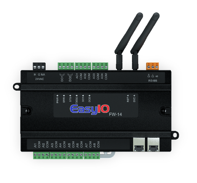 | Short desc | EasyIO WiFi Controller, 8 UI, 4 AO (Voltage) and 2 DO, 14 Points, EasyIO FW-14 |