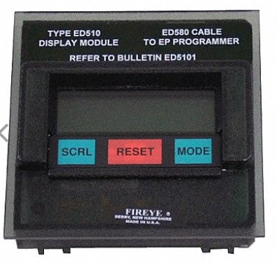 The ED510 Display Module is designed to operate with the FLAME-MONITOR Burner Management Control System using the EP and EPD style (remote mount only for EPD style) programmer modules as well as the MicroM series of controls.
