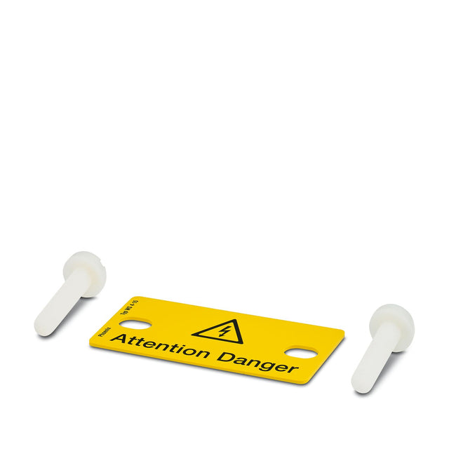 Phoenix Contact Warning Label, Plate, Orange, Labeled: Lightning Flash and Warning in English, Mounting Type: Plug In, for Terminal Block Width: 15 Millimeter 1004241