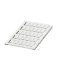 Phoenix Contact Snap-in Markers, Sheet, White, Unlabeled, Can be Labeled with: Topmark Neo, Topmark Laser, Bluemark ID Color, Bluemark ID, Bluemark CLED, Thermomark Prime, Thermomark Card 2.0, Thermomark Card, Mounting Type: Snapped, Lettering Field Size: 12 x 8 Millimeter, Number of Individual Labels: 30 1058146