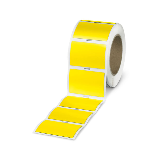 Phoenix Contact Label, Roll, Yellow, Unlabeled, Can be Labeled with: Thermomark E.300 (D)/600 (D), Thermomark Roll 2.0, Thermomark Roll, Thermomark Roll X1, Thermomark Rollmaster 300/600, Thermomark X1.2, Mounting Type: Adhesive, Lettering Field Size: 85.6 x 54 Millimeter, Number of Individual Labels: 250 1096329