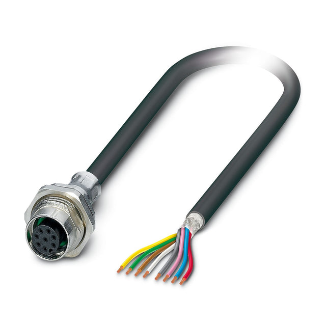 Phoenix Contact, Device Connector, Rear Mounting, Universal, 8-Position, PUR Halogen-Free, Black-Gray RAL 7021, Shielded, Socket, Straight, M12-Speedcon, Coding: A, on Free Cable End, Rear Mounting, M16 x 1.5, Cable Connection, Cable Length: 1 Meter, 0.25mm2, PUR Halogen-Free Black, Alternative Product in Accordance with RoHS II without Exemption 6c (Pb <0.1 Percentage) Item No.: 1239250 1419357
