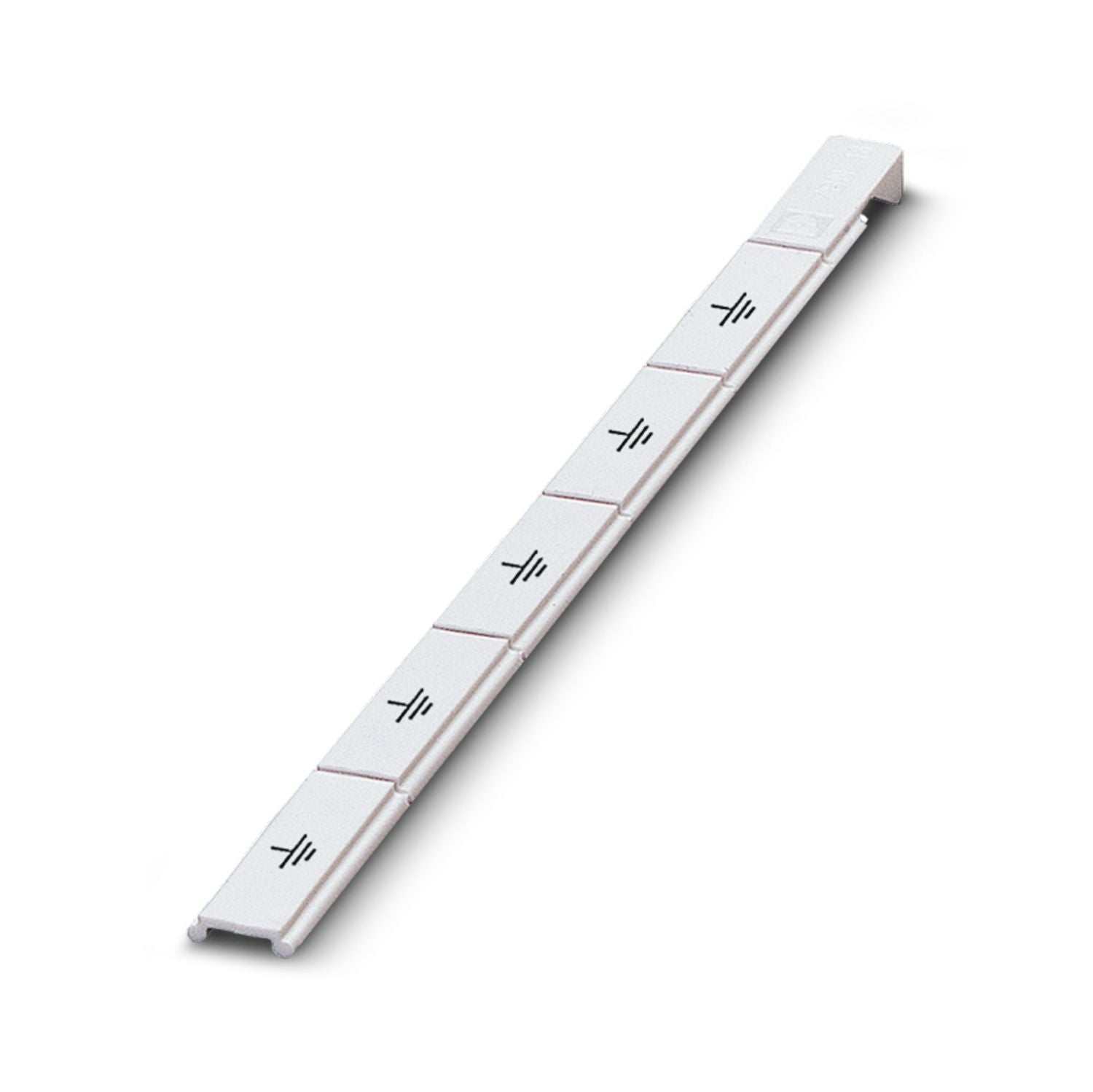 Phoenix Contact Marker for Terminal Blocks, Strip, White, Labeled, Horizontal: Grounding Symbol, Mounting Type: Snapped, for Terminal Block Width: 18 Millimeter, Lettering Field Size: 18 x 5 Millimeter, Number of Individual Labels: 5 2749589