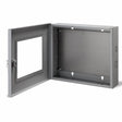 567-556 - Complete Exposed Control Cabinet Assembly. Size 0. 12in.H x 14in.W x 3.5in.D, with perforated mounting plate, in.windowedin. hinged door, lock and keys, pre-punched conduit knockouts included. US/CSA listed. SIEMENS Building Technologies label included. Gray finish.