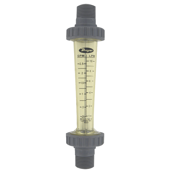 Dwyer, Polycarbonate Flowmeter, Range 0.1-1 GPM (.5-4 LPM) Water, 1/2 Inch Male NPT, 316 SS Float LFMB-04-A2