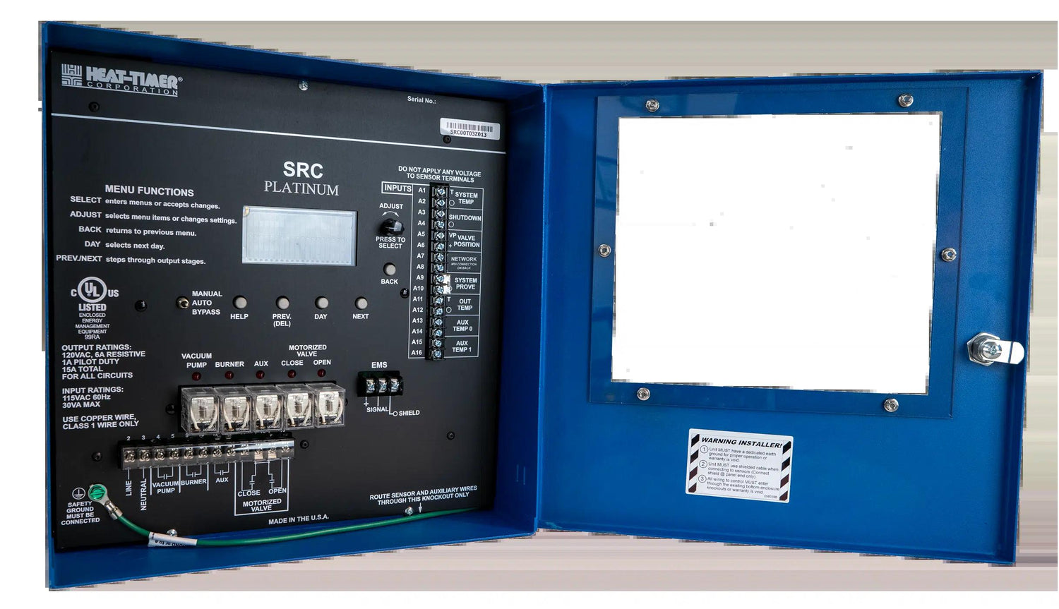 The SRC Platinum is a vacuum steam outdoor reset control for sub-atmosphere steam systems. The SRC Platinum will start/stop the vacuum pump and boiler, and modulate the steam motorized valve to vary (cycle) the duration of seam flow into a buildings radiation in accordance with changes in outside temperature. The colder it is outside, the more steam that is allowed to enter the buildings radiation. The BACnet Communication package provides BACnet IP or BACnet MSTP compatibility in addition to the capability of communicating using other protocols when used with a Fieldserver gateway.