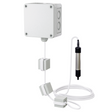 The ACI Relative Humidity with Temperature Transmitter Series Remote Probe utilizes a thermoset polymer capacitive sensing element with a hydrophobic filter to deliver a proportional relative humidity analog output and can also be configured with any resistive temperature sensor such as a thermistor or RTD. The remote probe wiring harness comes in lengths of 0.91 m (3 ft), 1.83 m (6 ft), 3.048 m (10 ft), or 6.096 m (20 ft) to provide mounting flexibility for your remote sensing applications. Single point field calibration can be done on the humidity transmitter, by using the increment and decrement dip switches. Each toggle of the increment and decrement switches will allow for a ±0.5 % RH increase or decrease. Calibration of the RH transmitters electronics can also be done using both the Zero and Span potentiometers depending on whether it is a current or voltage output device. All models feature conformally coated circuit boards to improve the reliability of the product in both high moisture and mildly corrosive atmospheres. The standard enclosure is an IP66/NEMA 4X rated moisture and corrosion resistant enclosure. A vinyl cap is provided to place over the sintered filter in applications in wash down applications to protect the sensing element from getting moisture sprayed directly on the sensor. NIST Calibration Certificates (Temperature and RH) are included for all TTM RH part series.