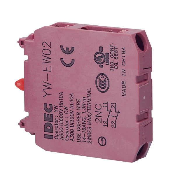 | Short desc | IDEC, YW Series Configurable Contact Block, DPST-2NC, 10 A at 120 VAC, 8 A at 24 VDC, Screw Terminal YW-EW02-UM |