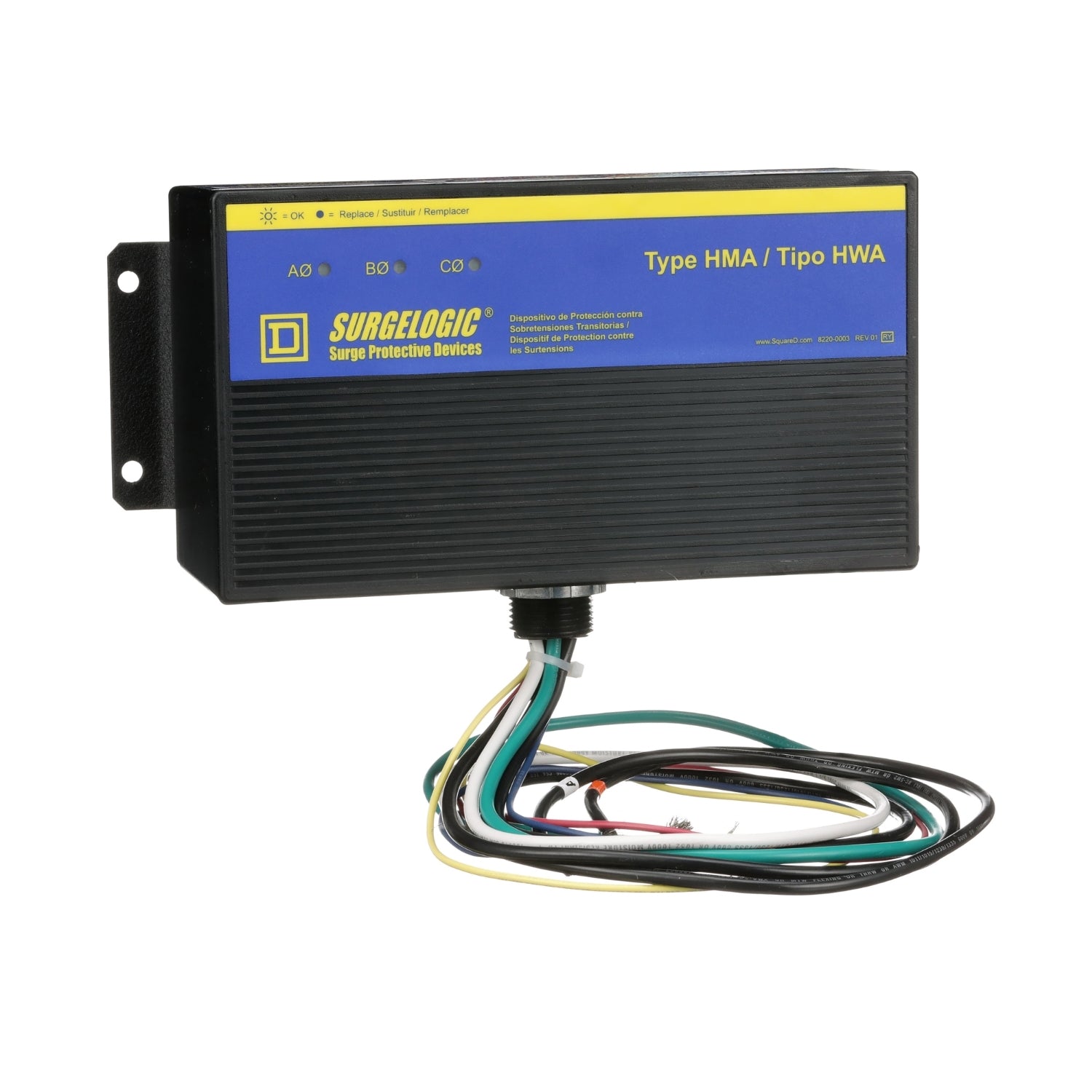 Square D Surge Protection Device, Surgelogic, Type HWA, 100 kA, 480Y/277 VAC, 3 Phase, 4 Wire, NEMA 4X TVS4HWA10X