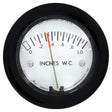 Mounting Orientation: Diaphragm in Vertical Position | Housing: Glass Filled Nylon, Polycarbonate Lens | Durable Housing Materials Make it Well-Suited for Rough Environments and Total High Pressure | Pressure Limits: 30 PSIG (2.067 Bar) Continuous to Either Pressure Connection | Accuracy: +/- 5 Percentage of FS at 70 deg F (21.1 deg C) | Applications: Room Positive Pressure Sensing, Local Indication on Filter Status, Face Velocity on Fume Hood, Duct Pressures, Cabinet Air-Purging, Air Samplers, Electronic Air Cooling Systems, Laminar Flow Hoods | Service: Air and Compatible Gases | Accuracy and Value Provides an Excellent Solution for OEM and User Applications | Temperature Limits: 20 to 120 deg F (-6.67 to 48.9 deg C) | Removable Lens and Rear-Housing Provides Easy, Cost-Effective Servicing
