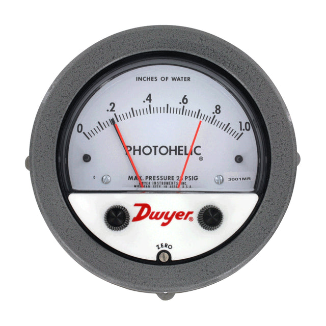 Dwyer, 3000MRS Series Photohelic Pressure Switch or Gage, 0-25mm w.c, 0.50 Minor Divisions, SPST NO, 1/8 Inch Female NPT 3000MRS-25MM