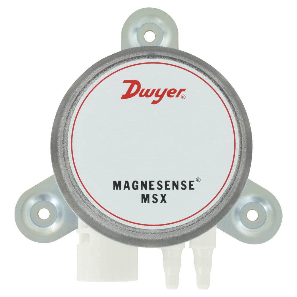 The Series MSX Magnesense Differential Pressure Transmitter combines the stability and versatility of the original Series MS2 Magnesense II transmitter for use in building control applications. The MSX simplifies the ordering process to deliver the desired configuration, which reduces product setup time. Pressure ranges are available in Pa, mm w.c., and in w.c. All pressure ranges can be configured in unidirectional or bidirectional modes, providing a total of 32 ranges. The MSX transmitter can provide a linear pressure output or a linear velocity output with the square root extraction from the transmitter. Additional parameters have been included to expand the square root capability for calculating flow. Dual voltage and milliamp output signals can be used to provide both control and equipment output signal verification.