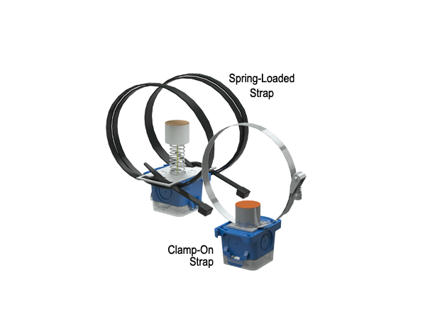 Clamp-On Strap sensors are designed to monitor water temperature in retrofit or filled pipe applications. This units measure the water temperature by sensing the surface temperature of the pipe. This unit has a bendable copper sensing plate and an adjustable hose clamp to fit pipes up to 4.5 Inch.
