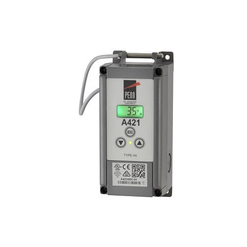 | Description | The A421 Series Electronic Temperature Controls are single-stage controls with a single-pole, double-throw (SPDT) output relay, a bright backlit LCD, and a three-button touchpad interface that can be set up to restrict user adjustments. An LED indicates the output relay's On/Off status. The A421 Series Controls have simple On and Off temperature settings for heating or cooling, an adjustable anti-short cycle delay, and a temperature offset function |