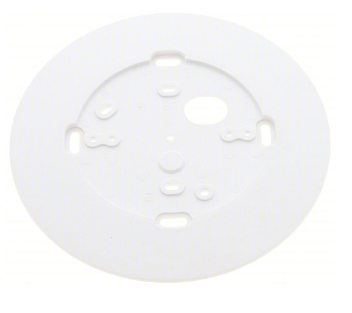 These plates cover holes or damage to walls when thermostats are replaced or smaller units are installed. The thermostat is mounted to the plate, which is secured against a wall or wall box, and the thermostat's wires are fed through the middle of the plate. Wall cover plates must match the brand or series of thermostats they're used with.