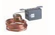 The Siemens ET 134 Low Temperature Detection Thermostat Series is a remote bulb instrument with a Single-Pole Double-Throw (SPDT) switch which closes and opens a circuit in both directions. This thermostat has a limited vapor charge since its liquid volume is less than the volume of 12 inches (305 mm) length of the bulb. When at least 12 inches (305mm) of the bulb is exposed to a temperature of at least 1°F (0.6°C) below the thermostat set point, the charge begins to accumulate and condense in this section. The condensing charge creates a vacuum into which the remaining charge is drawn and also condensed. When both liquid-vapor surfaces are within a 12-inch (305 mm) length, the vapor pressure in the thermal system and the bellows decrease until the electrical contacts open.