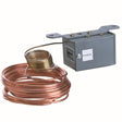 Electric Low Temperature Detection Thermostat with manual reset action, 120/240 Vac switching, single-pole, double-throw switch action, and averaging sensing bulb with capillary element. Universal Mounting Bracket included.