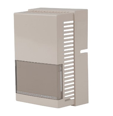 This Plastic Powerstar Pneumatic Thermostat Cover is Desert Beige in color with Adjustment Set Point exposed, Indicator Set Point exposed and Chassis Thermometer concealed. Use with 1/2" Set Point Knob. Logo.