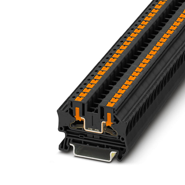 Phoenix Feed-Through Terminal Block, Nominal Voltage: 1000 V, Nominal Current: 32 A, Number of Connections: 2, Connection Method: Push-in Connection, Rated Cross Section: 4 MILLIMETER2, Cross Section: 0.2 MILLIMETER2 - 6 MILLIMETER2, Mounting Type: NS 35/7,5, NS 35/15, Color: Black