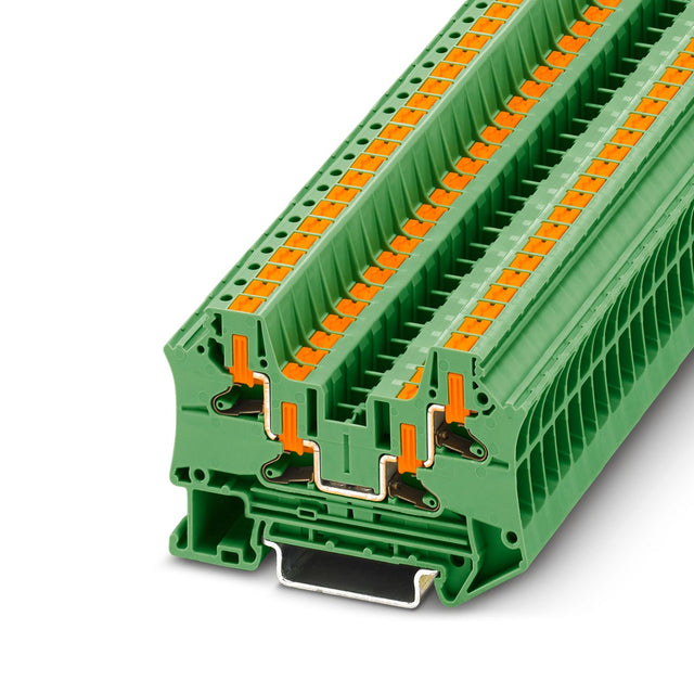 Phoenix Feed-Through Terminal Block, Nominal Voltage: 1000 V, Nominal Current: 32 A, Number of Connections: 4, Connection Method: Push-in Connection, Rated Cross Section: 4 MILLIMETER2, Cross Section: 0.2 MILLIMETER2 - 6 MILLIMETER2, Mounting Type: NS 35/7,5, NS 35/15, Color: Green