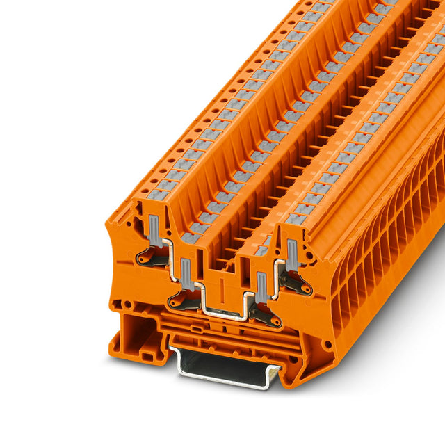 Phoenix Feed-Through Terminal Block, Nominal Voltage: 1000 V, Nominal Current: 32 A, Number of Connections: 4, Connection Method: Push-in Connection, Rated Cross Section: 4 MILLIMETER2, Cross Section: 0.2 MILLIMETER2 - 6 MILLIMETER2, Mounting Type: NS 35/7,5, NS 35/15, Color: Orange